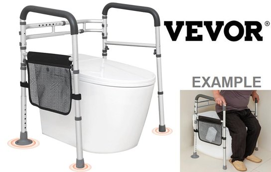VEVOR Toilet Support Rail Collapsible Seat Frame for various toilets - 300lbs max - Silver/Gray - (MODEL: FBL900631)