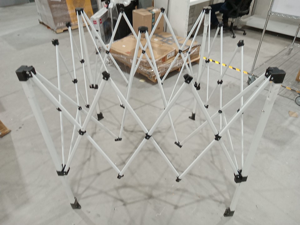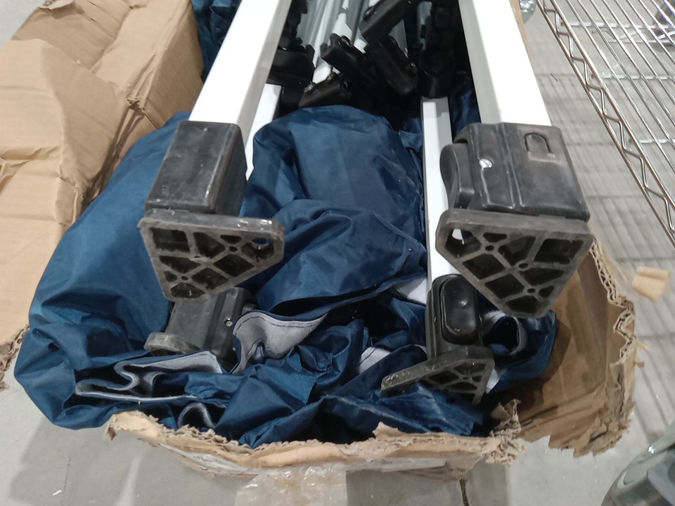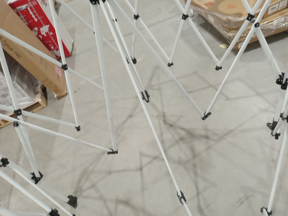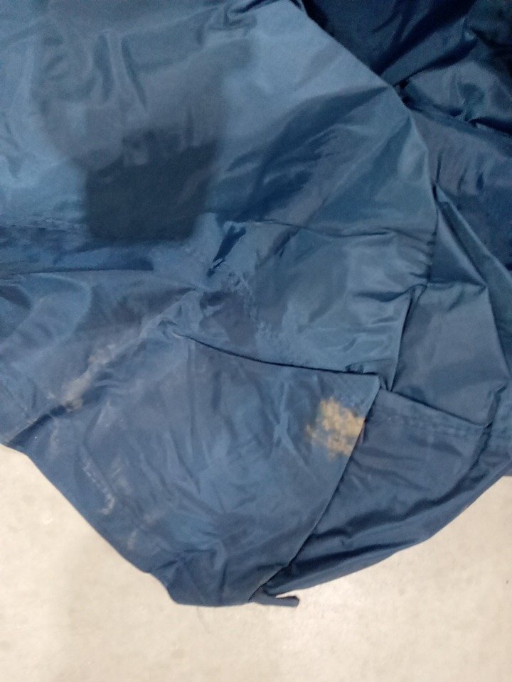 There is dirt debris present from previous use. Frame has scuffing and dirt marks on the feet.