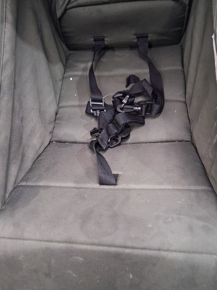The seat has multiple stains/marks from prior use, there is also a smell from the fabric - Would require a through clean before use