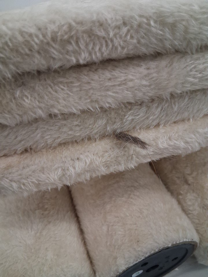 item has pet hair and fuzz from previous use also is missing almost all hardware please see pictures