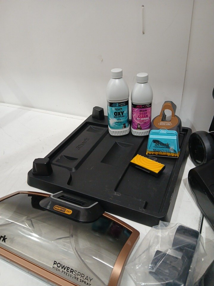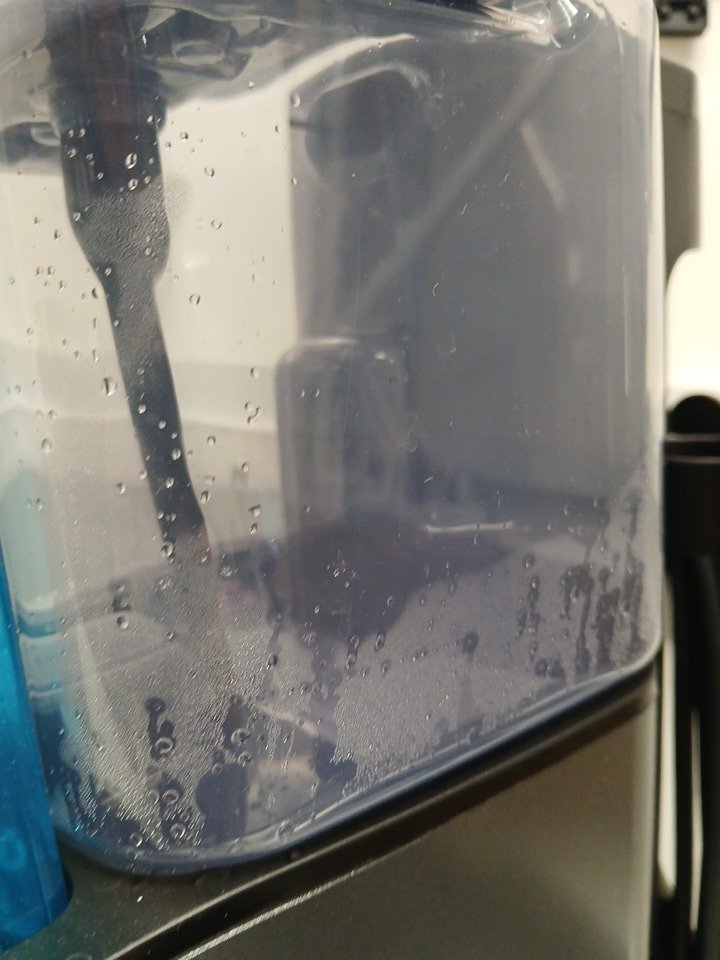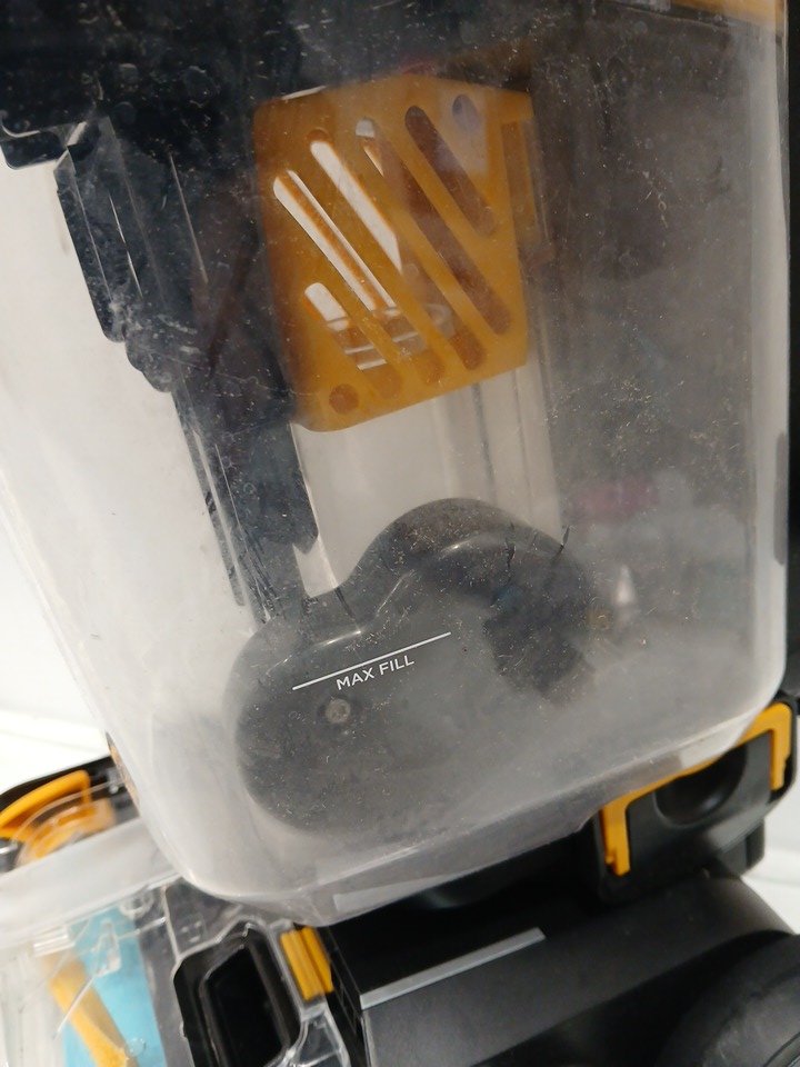 there is some water left in the cannister there is some dirt and debris on some of the attachments the cleaning solutions have been used tested for power