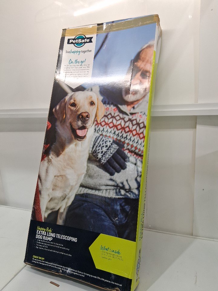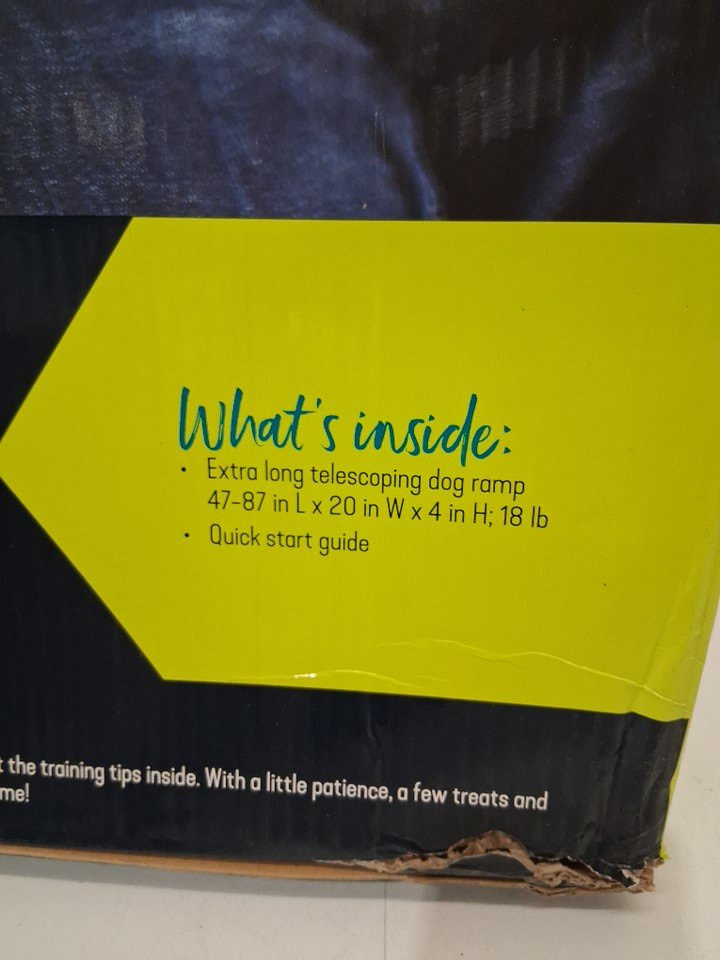 PETSAFE SOLVIT DELUXE EXTRA-LONG TELESCOPING PET RAMP - EXTENDS FROM 47" TO 87" - 300LBS - GREY (MODEL: 62320)
