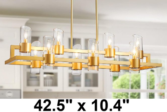 WUZUPS Modern Farmhouse Linear Light Fixture Island Rectangle Chandelier 10-Light with Clear Glass - 42.5" X 10.4" - GOLD (Model: USHD9608G8)