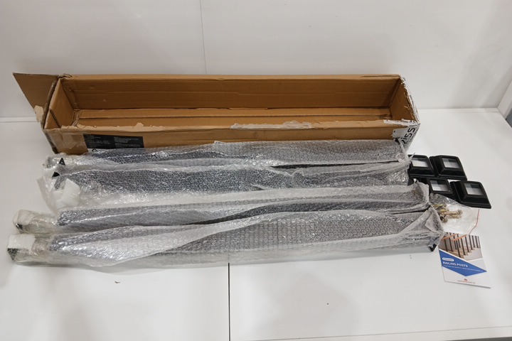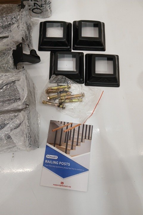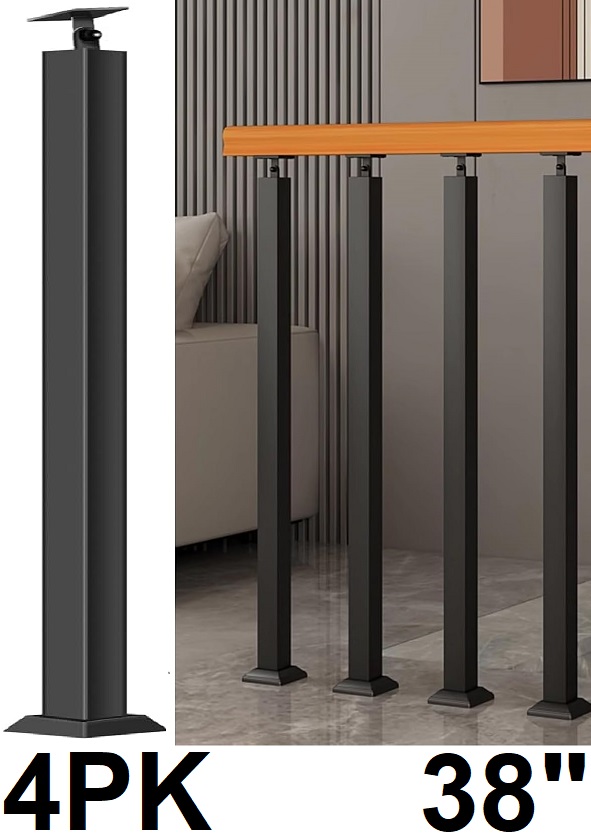 4PK Domart Square Stair Baluster Posts - 270° Adjustable Metal Railing Spindles with Flat Bracket Base and Screws Kits - Black - (Model: ‎Domart-Ca-Black-F95-4pack)