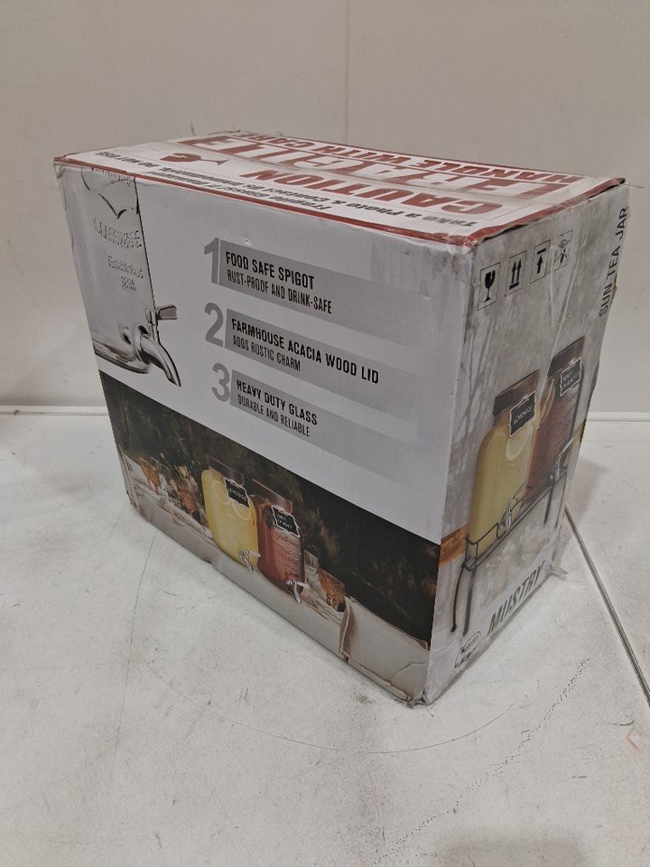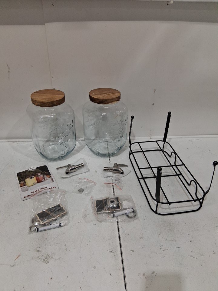 2PK Mustry Mason Glass Jars Reusable Drink Dispenser with Stand - 1 gal each - clear/wood