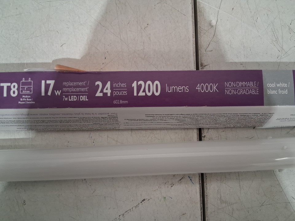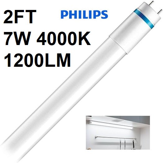 Philips LED straight T8 tube light for replacing fluorescent bulbs - 2ft - 7W - 4000k - 1200lm - cool white (Model: 541839)