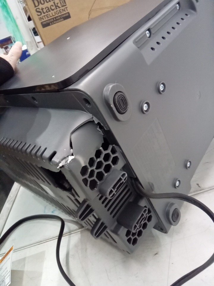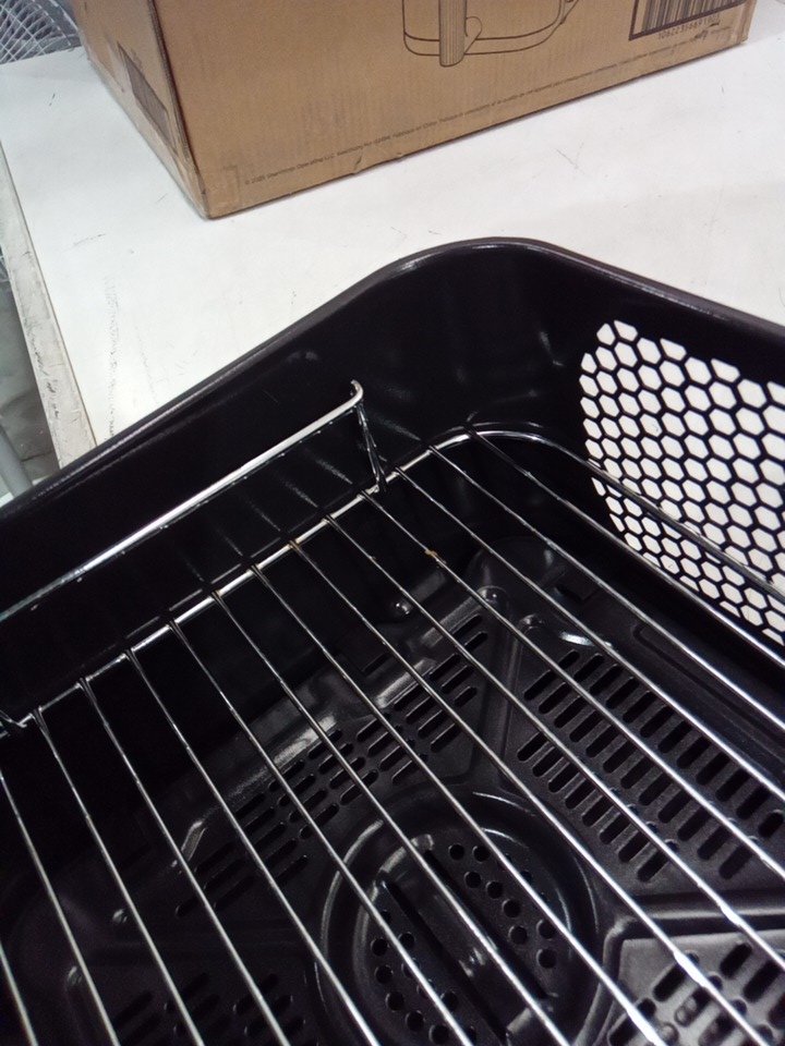 please note that there is slight grease\food residue inside the fryer from being previously used. the back of the item is also cracked\damaged from shipping. please see all photos.