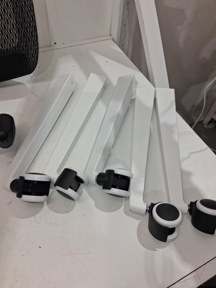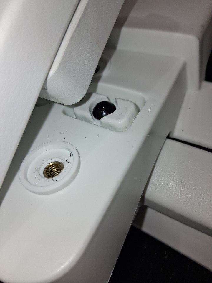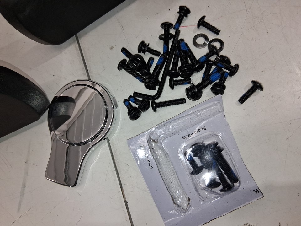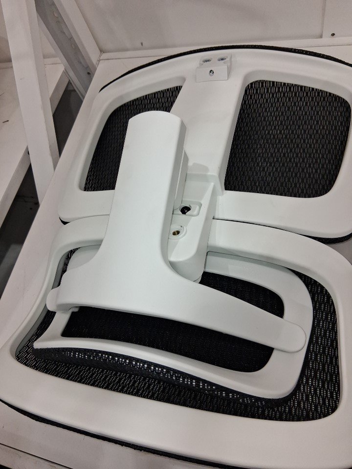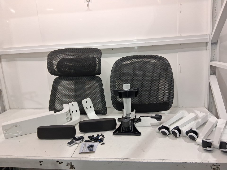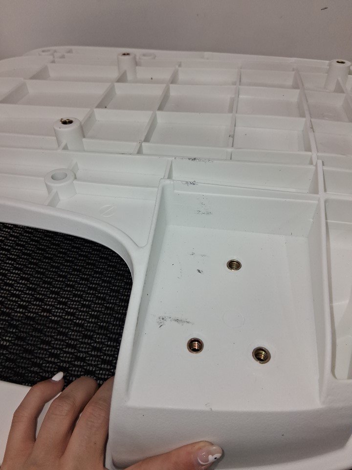 the screws were open from inspecting, there are some black scuff marks on the back of chair and bottom of seat from use, see photos.