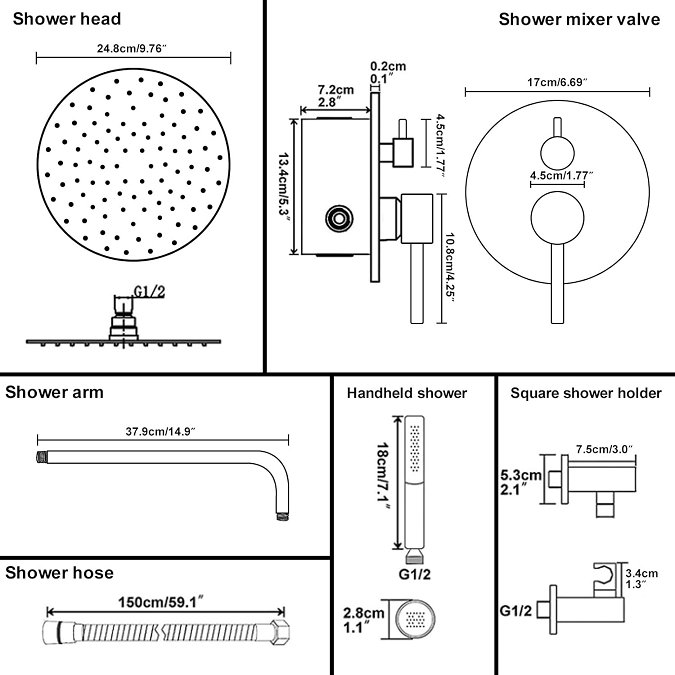 BESY RAIN SHOWER SYSTEM WITH RAIN SHOWER HEAD AND HANDHELD SHOWERHEAD - 10" - MATTE BLACK