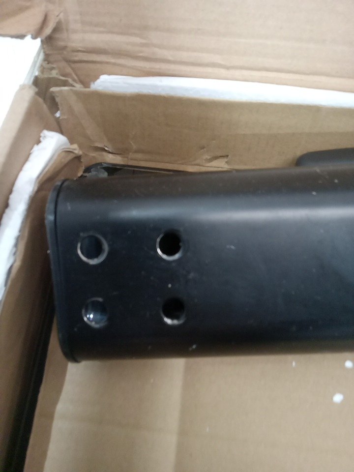 Missing part of the bracket and can likely be replaced with other brand's mount. One of the clips on the back is broken. Has some screw marks on it from previous use.