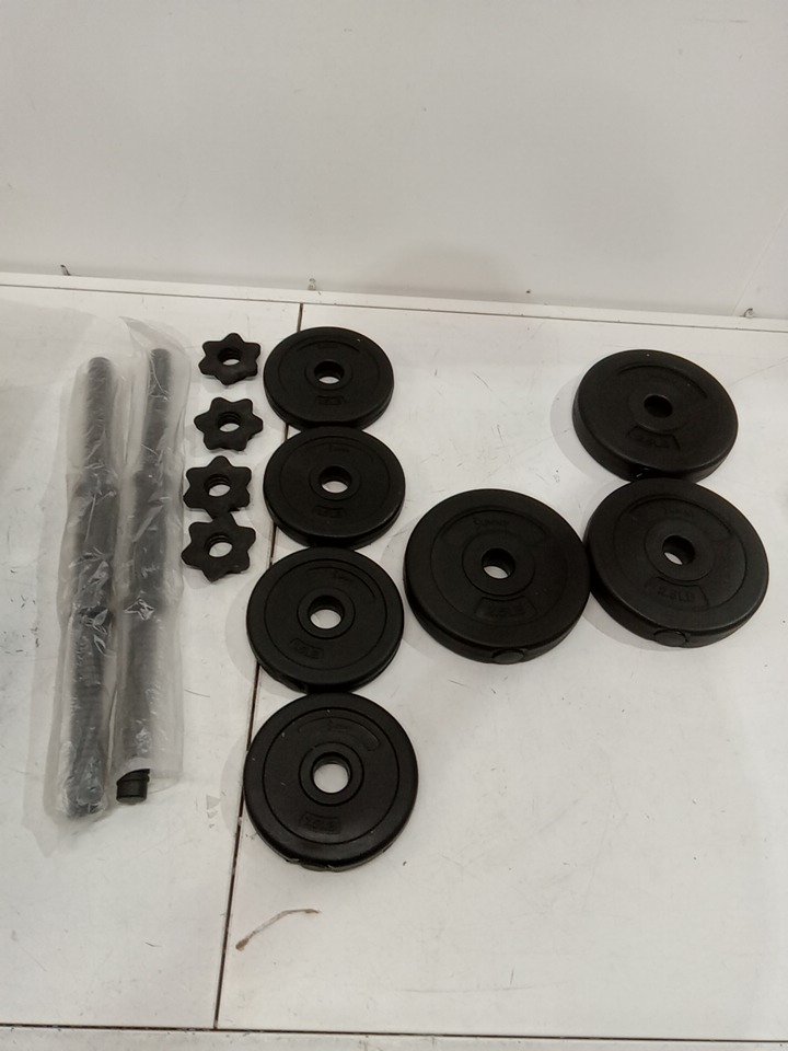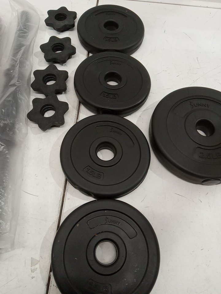 The item is missing a 2.5lbs plate and 4x 5lbs plate making it a total of 13.5lbs instead of the supposed to be 40lbs.