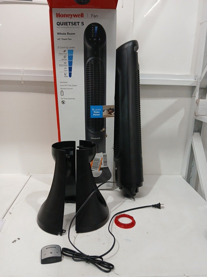 Honeywell quietset 5 speed tower fan - 40" - 120V - black (model: hyf260bcv1)