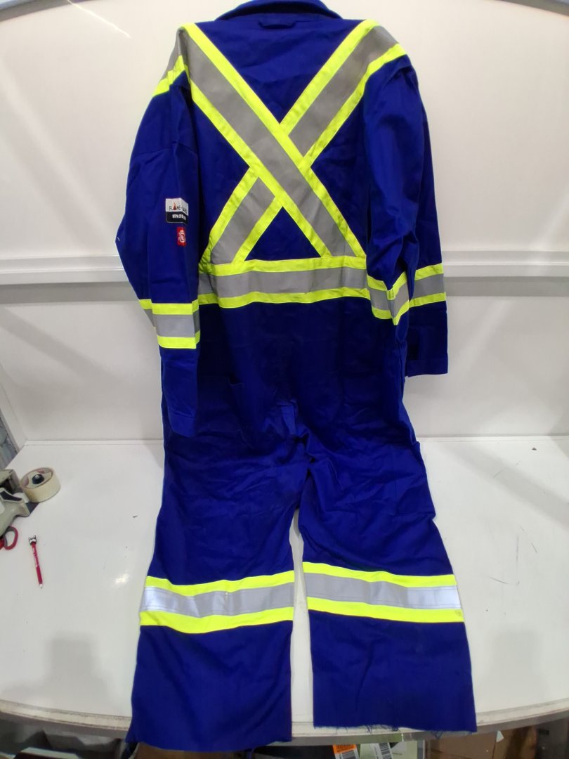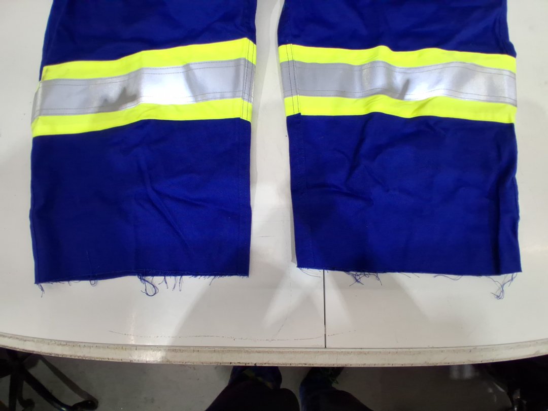 Item has mild dirt/dust on back side of surface. Item has mild fraying on pant legs that show signs of previous cuts on fabric to prepare for hemming. Inseam of pant legs measured at 28.5".