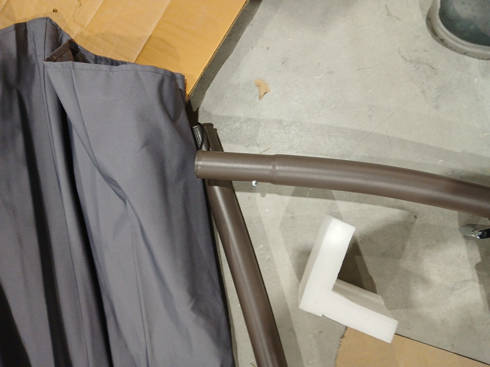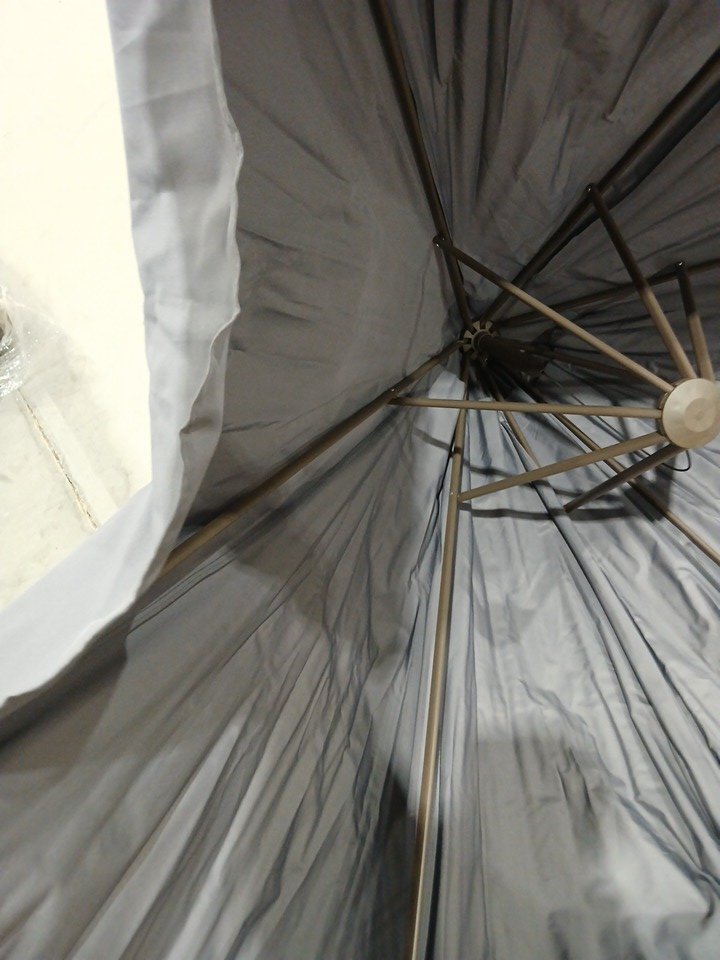 Please note there is a presence of light scuffs at connecting points of the umbrella, indicating prior installation. See photos attached.