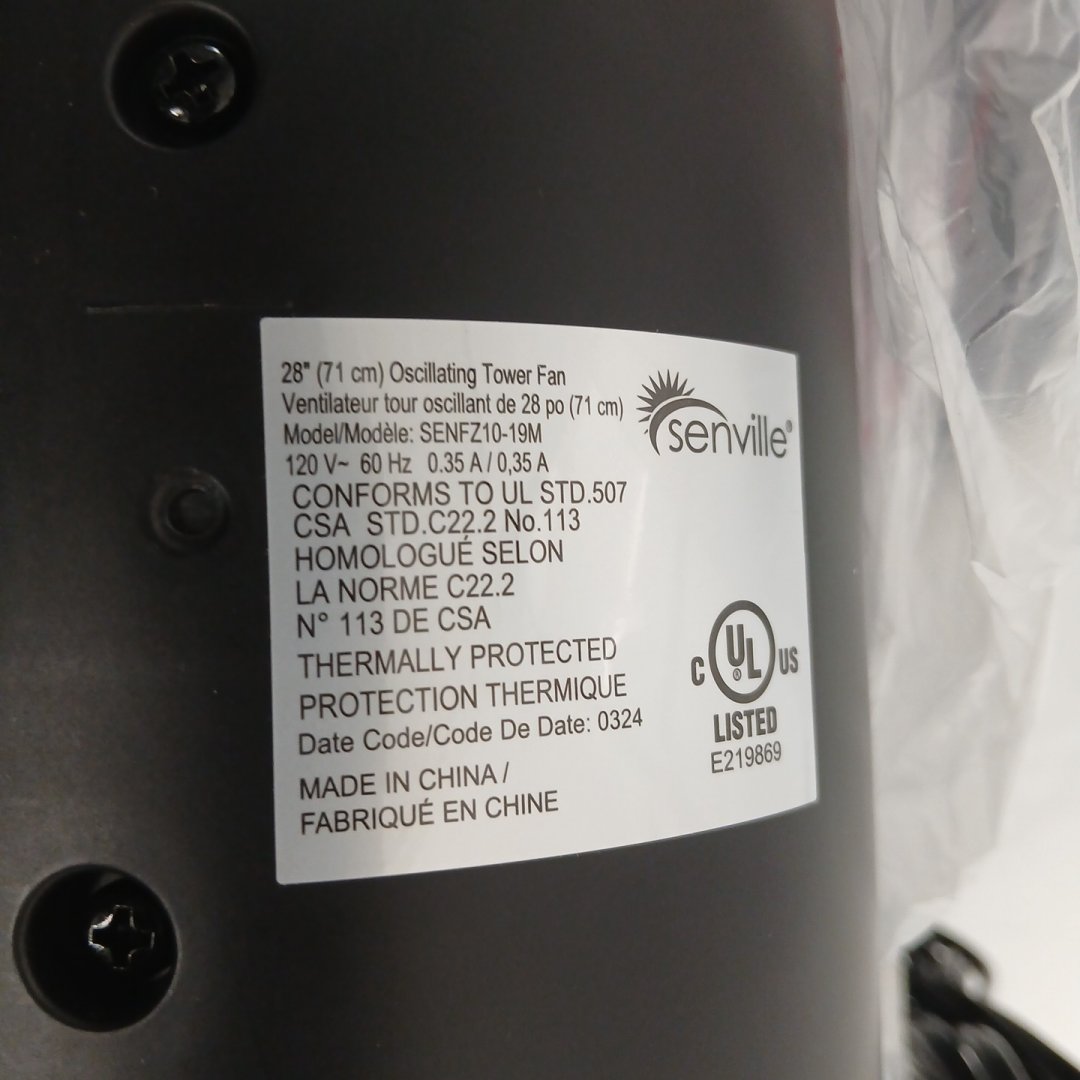 SENVILLE OSCILLATING TOWER FAN - 3-SPEED, 60° OSCILLATION - 28" - BLACK (MODEL: SENFZ10-19M)