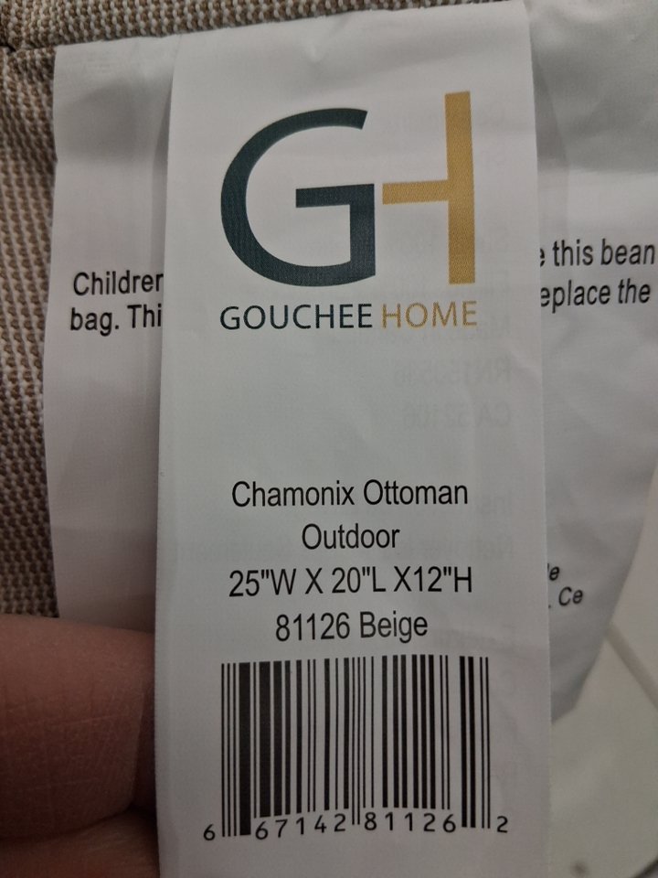Gouchee Home Indoor/Outdoor Chamonix Ottoman - 25" x 20" x 12" - Beige (Model: G81126)
