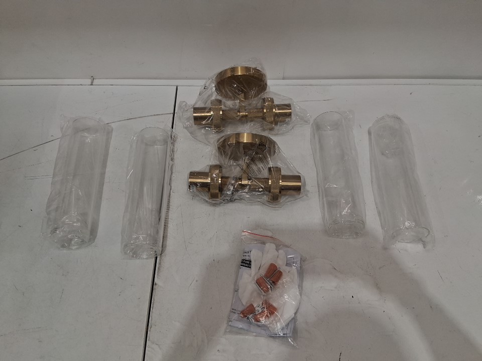 2PK LaLuLa Vanity Light Fixtures Modern Dual-Light Wall Sconces with Rippled Glass - 25" - E26, 60W - GOLD (MODEL: JYW083-2GD)