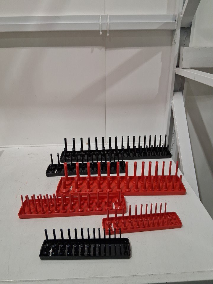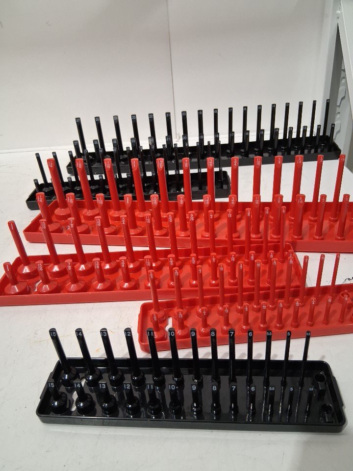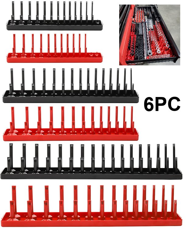 6PC hedume Socket Organizer Drive Deep and Shadow Socket Holders Tray Set - 1/4", 3/8" , 1/2" - RED SAE & Black Metric