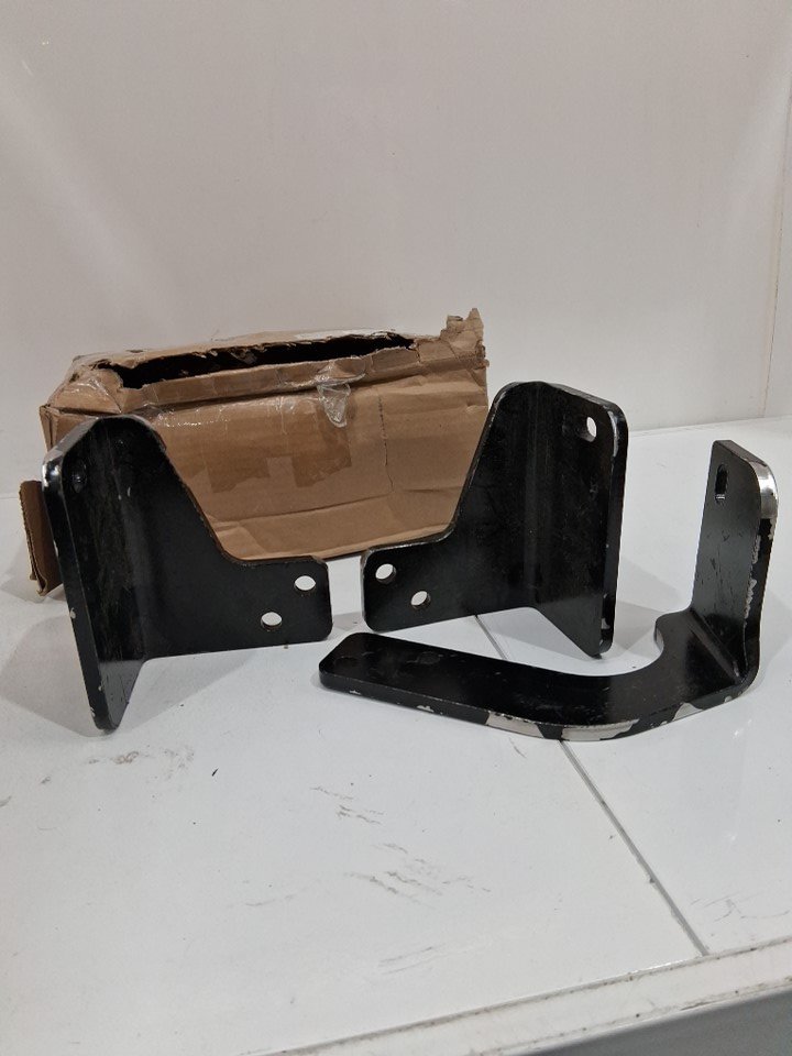 note that this is 2 back brackets and 1 front (missing 1 front). missing paint possibly installed before.