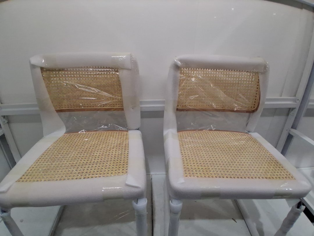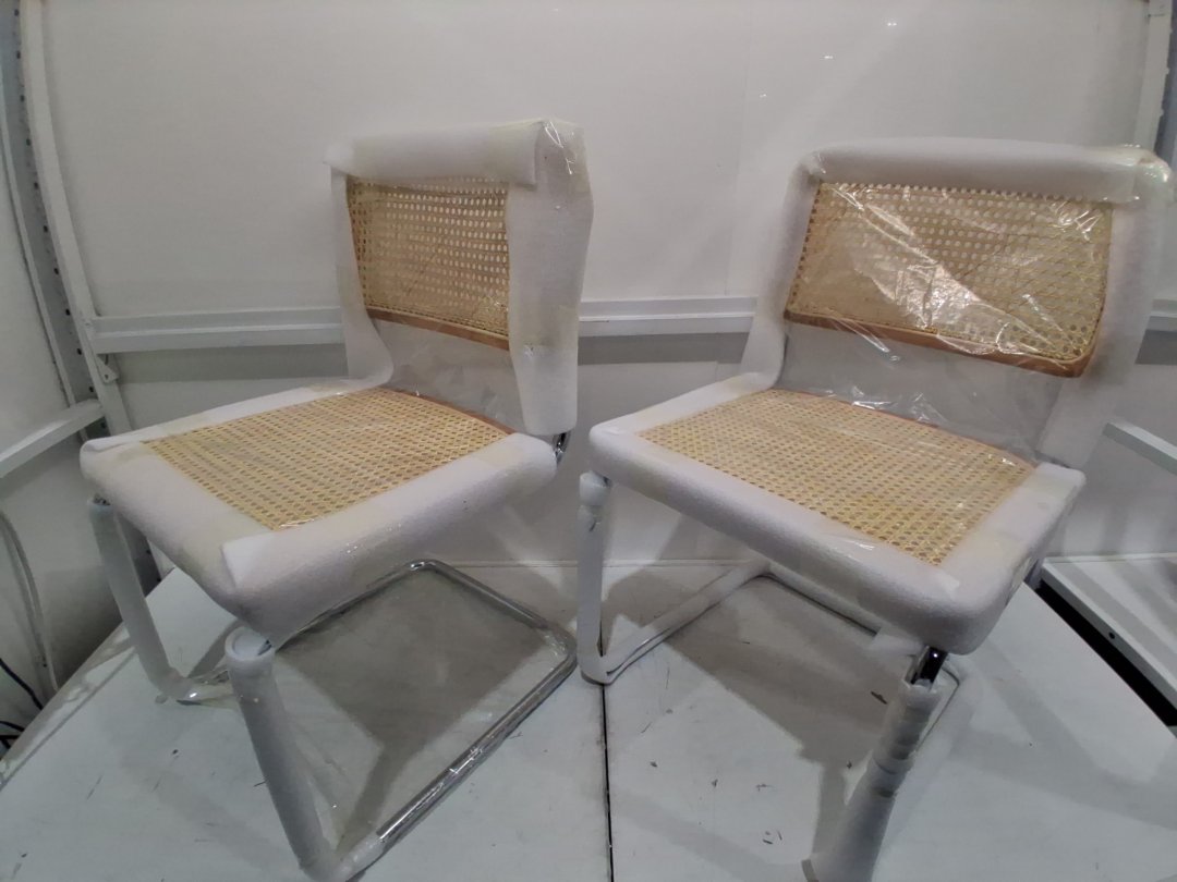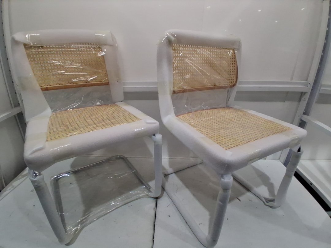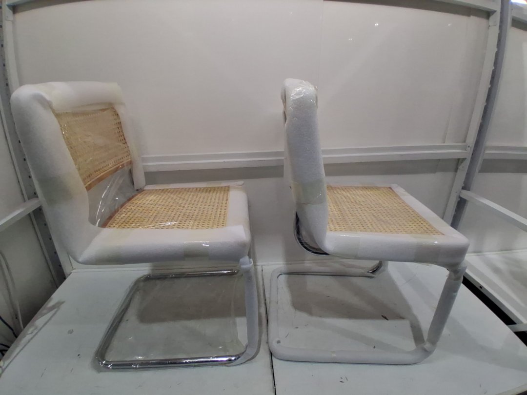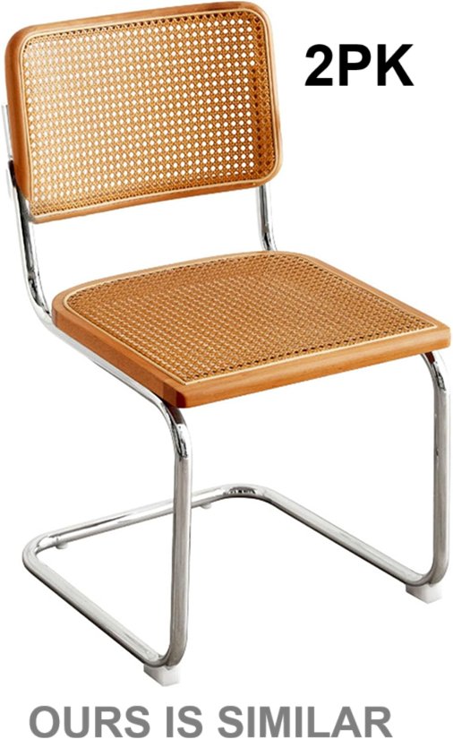 2PK Wood rattan armless dining room/kitchen chair with chrome base - brown/chrome