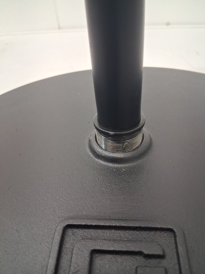 Stand has scuff marks on twist clutch and twist clutch is jammed, Base and stand threads paint is rubbed off from previous assembly