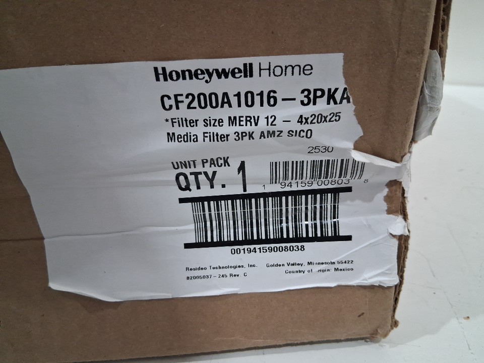 3PK HONEYWELL HOME MICRO DEFENSE AIR FILTERS, MERV 12- 20" x 25" x 4" (MODEL: CF200A1016-3PKAM)