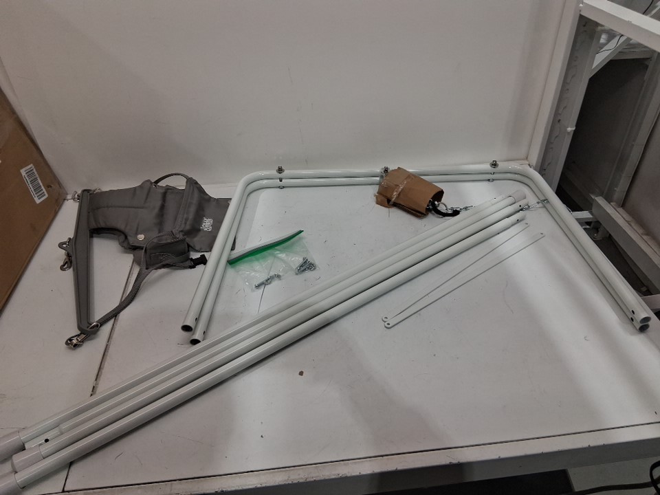 Item has some light marks on connections from prior use- hardware was loose in box, it has been bagged up but additional generic hardware may be required.
