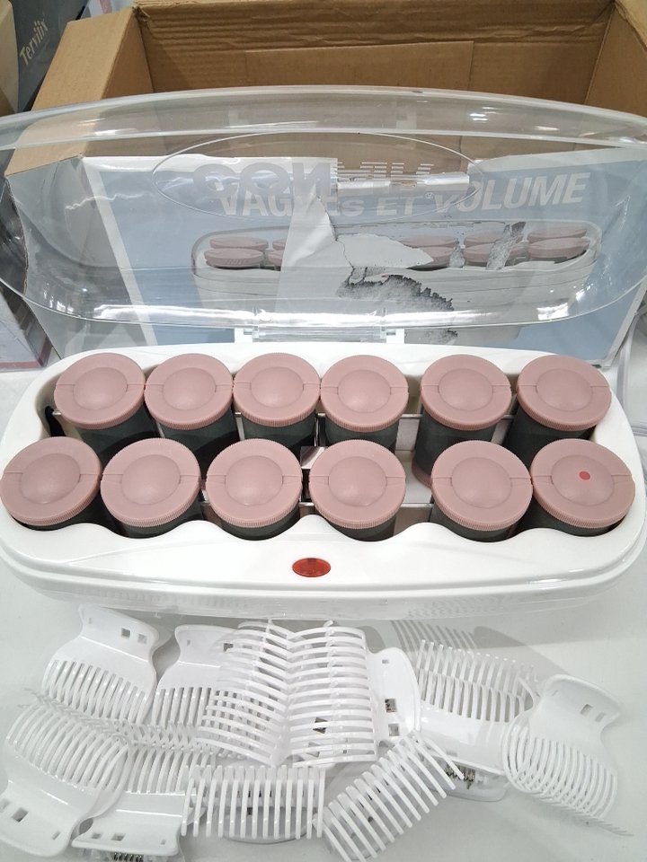 conair xtreme big curls hot rollers with super clips - 12 capacity - white/pink (model: chv12xnc)