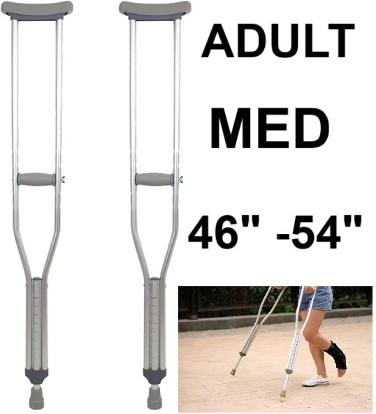 adult Height Adjustment Crutches with Cushioned Underarm & Comfortable Hand Grip-46"- 54" - medium