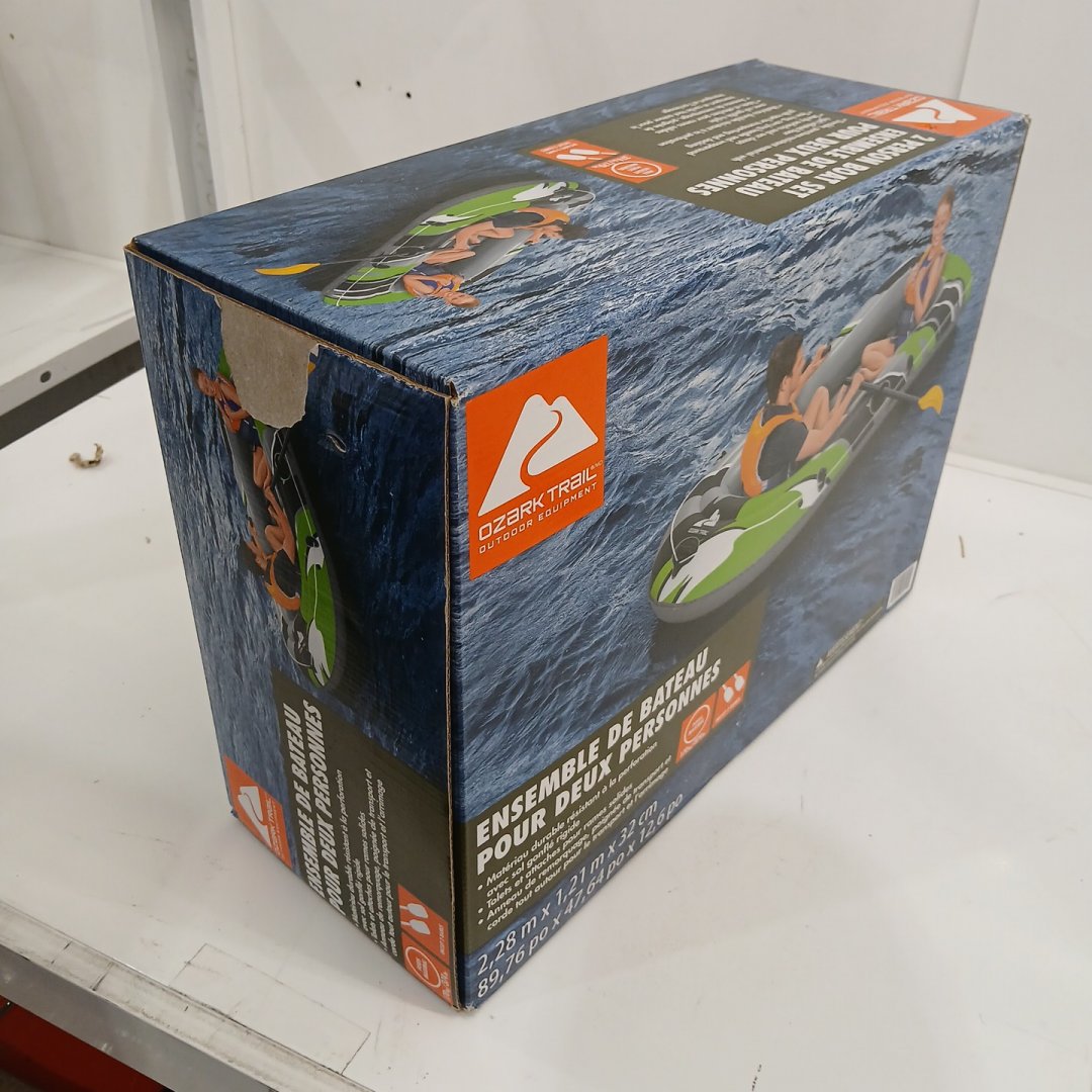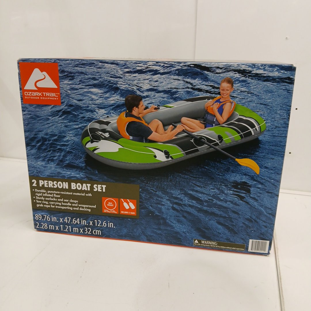 OZARK TRAILS 2-PERSON INFLATABLE BOAT SET, 375LB CAPACITY - 89" X 47" X 12" - GREEN, GREY