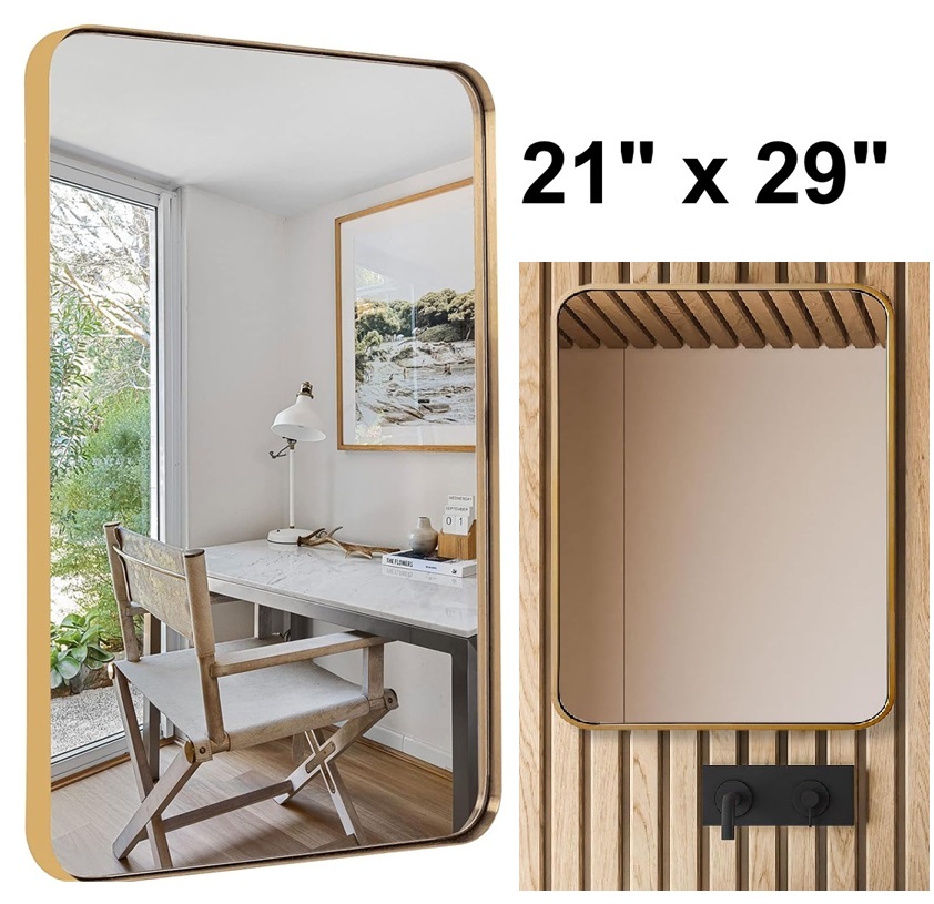 ZZPQ Small Rectangle Metal Frame Mirror with Rounded Corners - 21" x 29" - gold