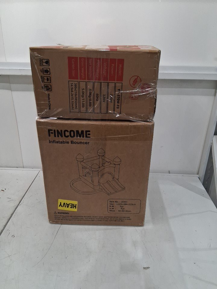 FINCOME Bouncer House Inflatable Bounce Castle with Double Slide Ball Pit - 10.59FT x 9.31FT x 7.3FT - WHITE (Model: 20351)
