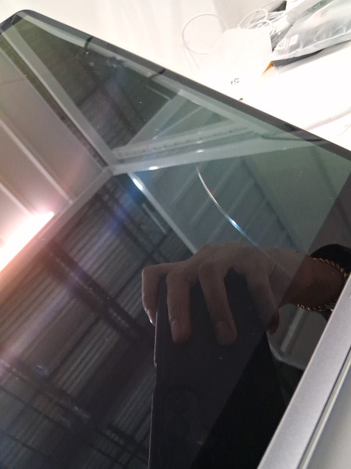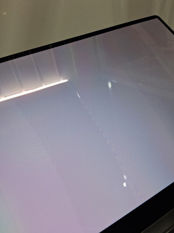 + Item has THREE cracks spiderwebbing across the entire screen + + Touchscreen and laptop is still functional + + The top lid has a small dent/chip in it +