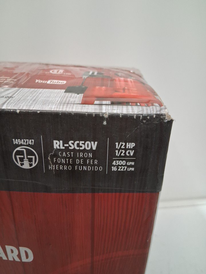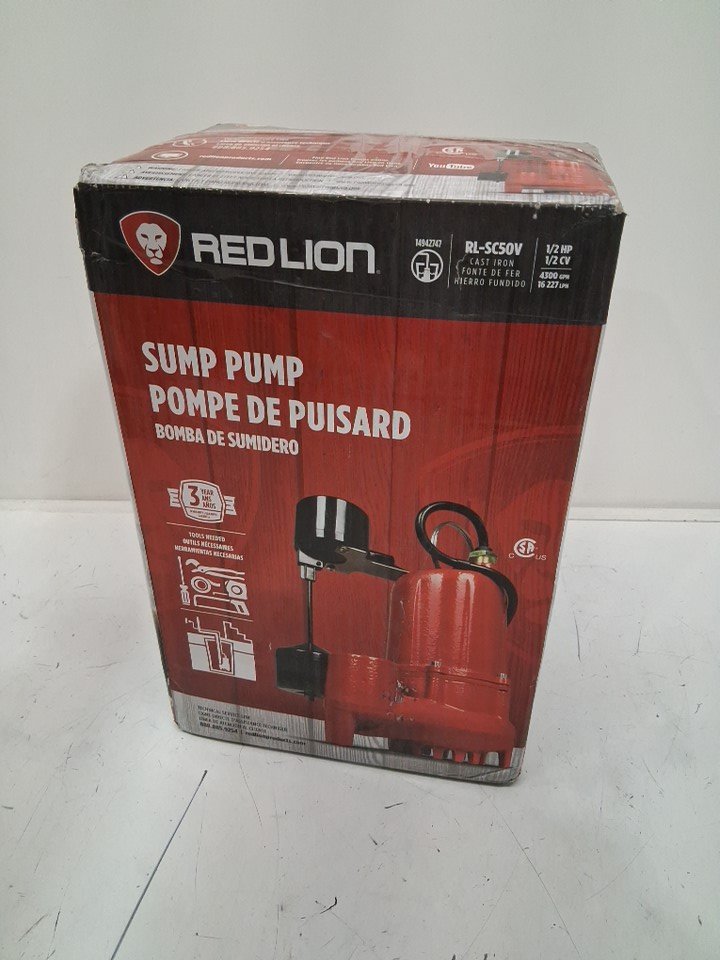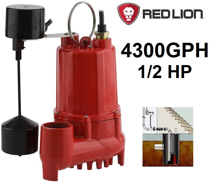 RED LION 1/2 HP CAST IRON SUMP PUMP WITH VERTICAL SWITCH - 4300GPH, 10FT CORD, RED (MODEL: RL-SC50V)