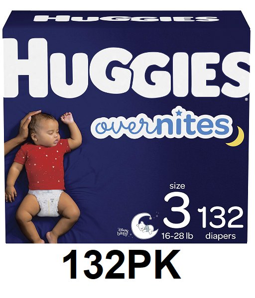 132PK HUGGIES OVERNITES NIGHT TIME BABY DIAPERS - SIZE 3 - WINNIE THE POOH - (model: 5454701)