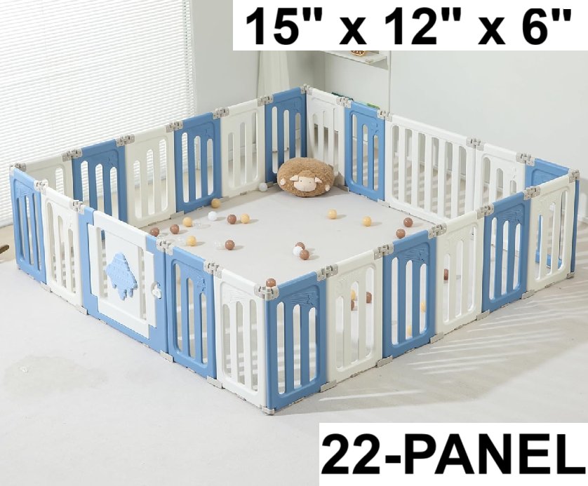Bestgame foldable 22-panel baby play pen - 15" X 12" X 6" - BLUE/WHITE (model: wl-10017)
