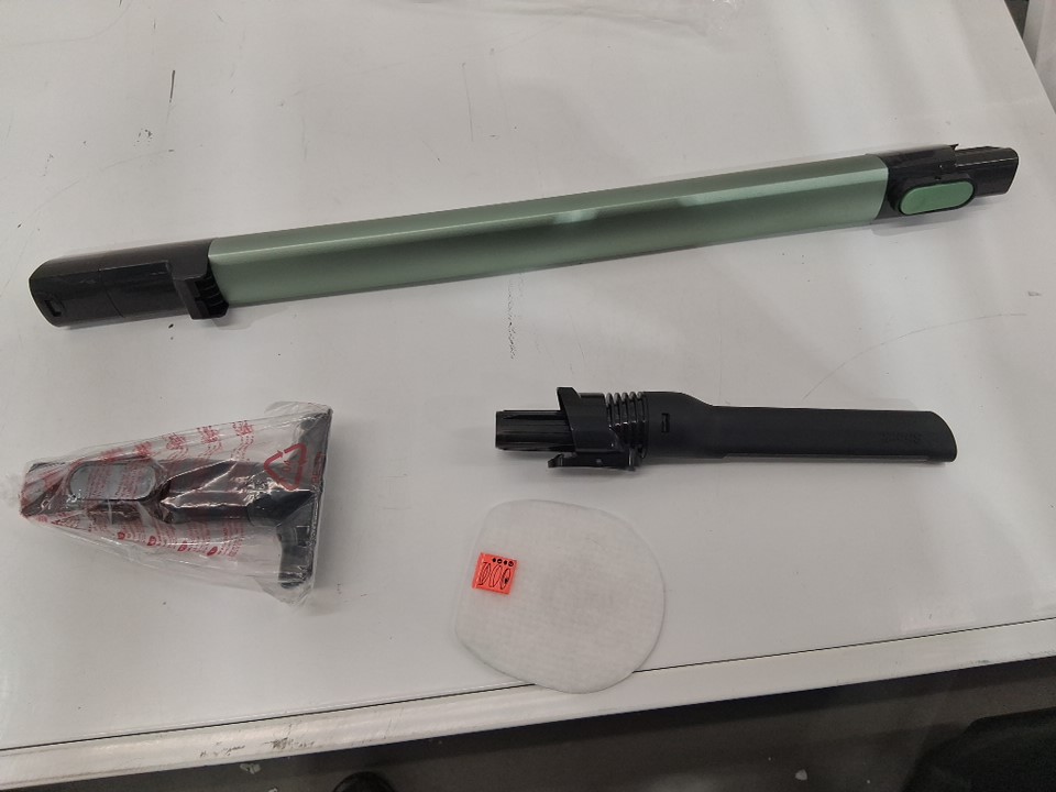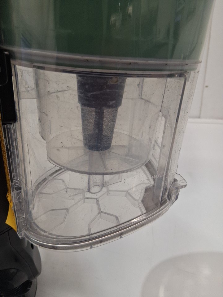 Some light dirt on the inside of the tank and behind the roller imply some previous use, but all parts appear present and in good condition - see photos. Tested for power, charging, and basic function.