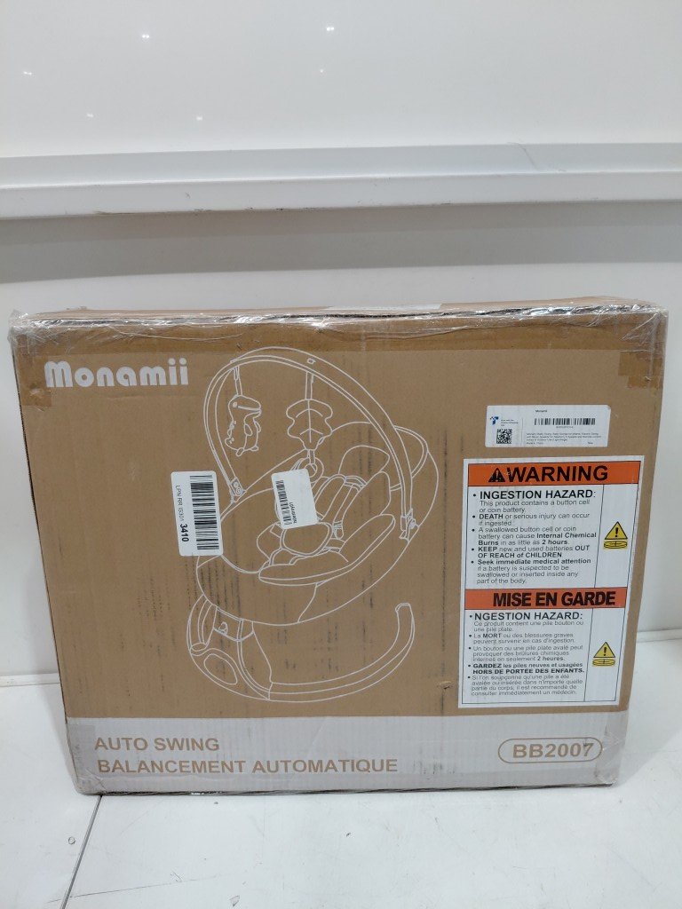 Monamii Electric Baby Swing with Bluetooth speaker with 5 speeds and remote 0-12 months - beige (model: BB2007)