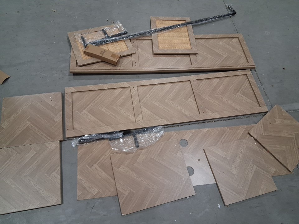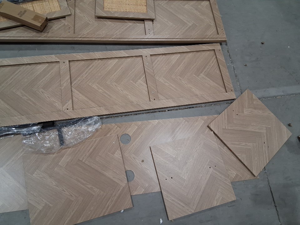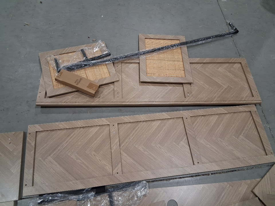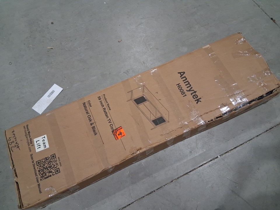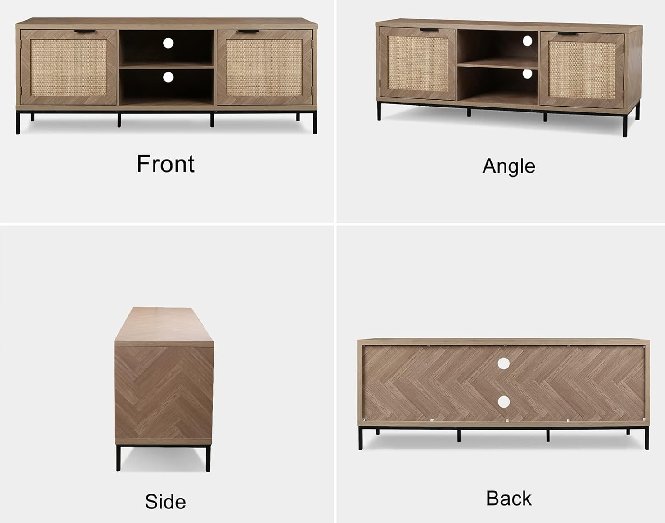 anmytek rattan Mid Century Modern Entertainment Center with Natural Rattan Door & Herringbone Texture - fits upto 65 inch tv's - natural oak - (model: h0081)