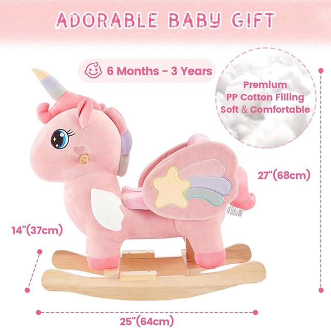 Funlio unicorn fairy rocking horse chair - 27'' x 25'' x 14'' - Pink (Model : ‎FL-028)