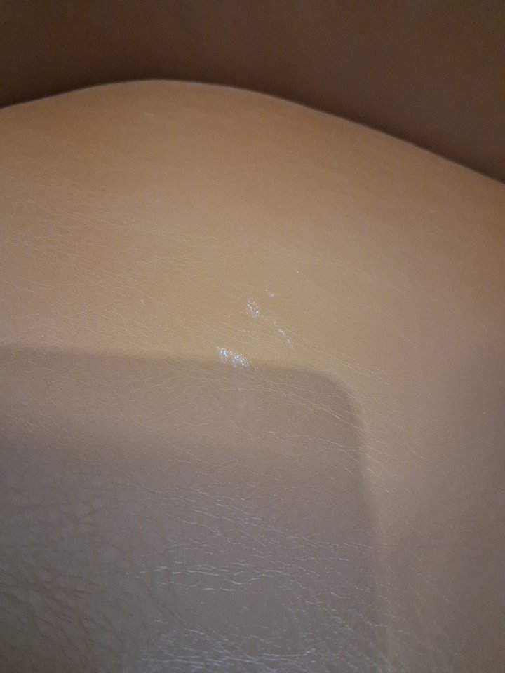 One chair has a scuff on the seat, both chairs have indents from shipping that *should* puff out after set up