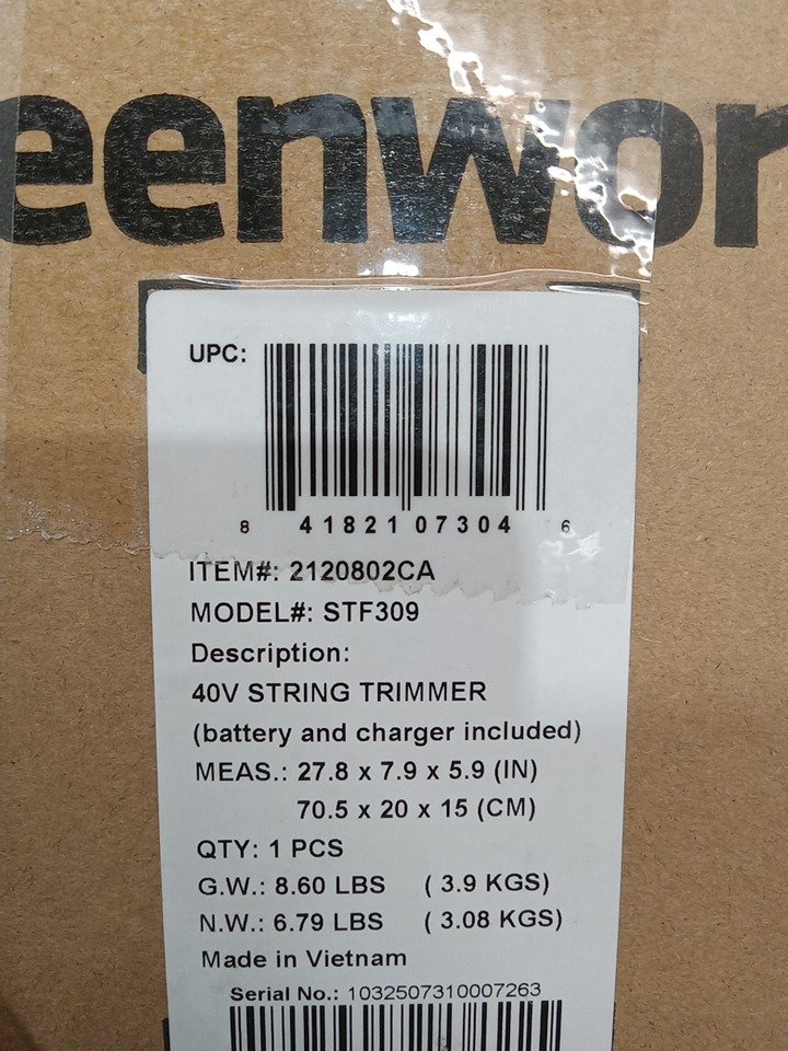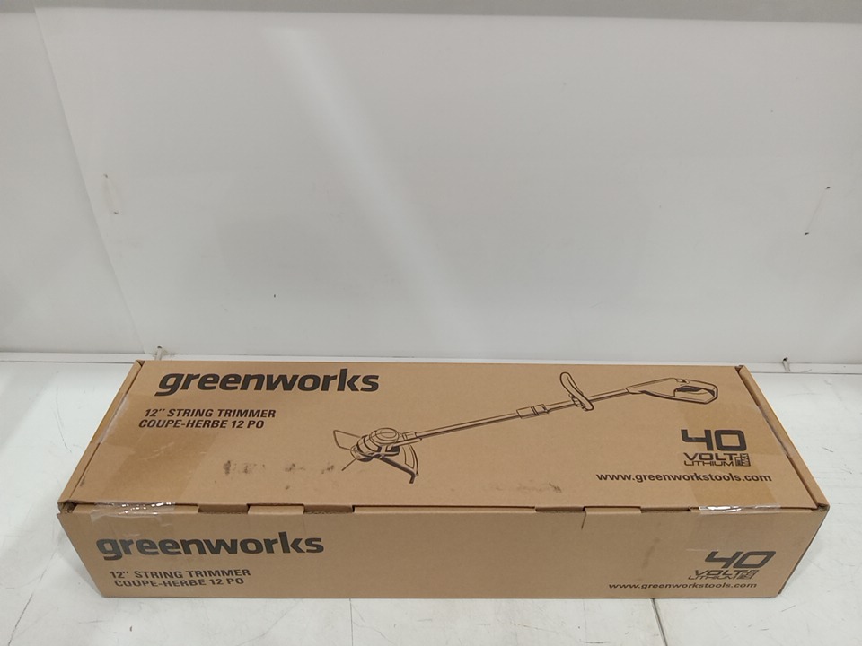 Greenworks 40v Cordless String Trimmer with battery & charger- 12"- green/black (Model: stf309)