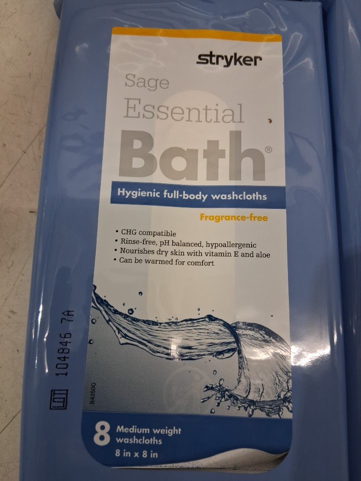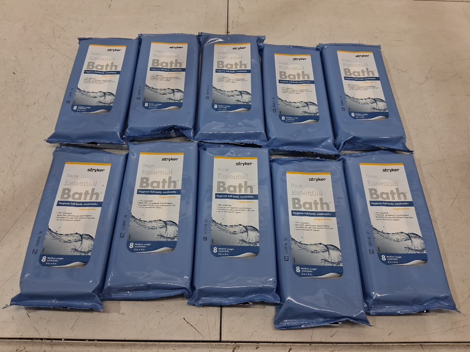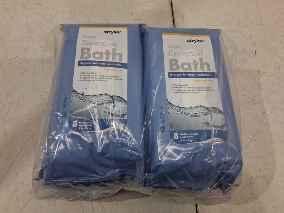 (10) 8pk stryker Sage Essential Bath Cleansing Washcloths - 8" x 8" each - 80 cloths total - white