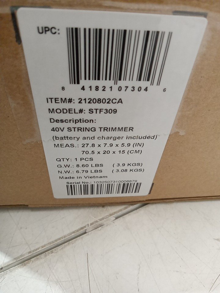 Greenworks 40v Cordless String Trimmer with battery & charger- 12"- green/black (Model: stf309)