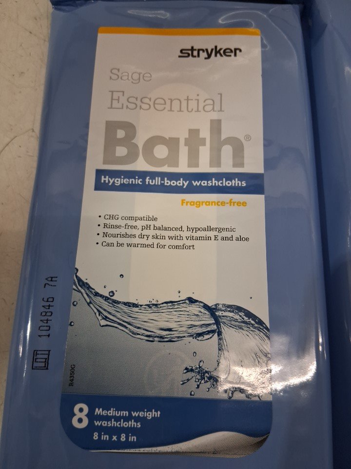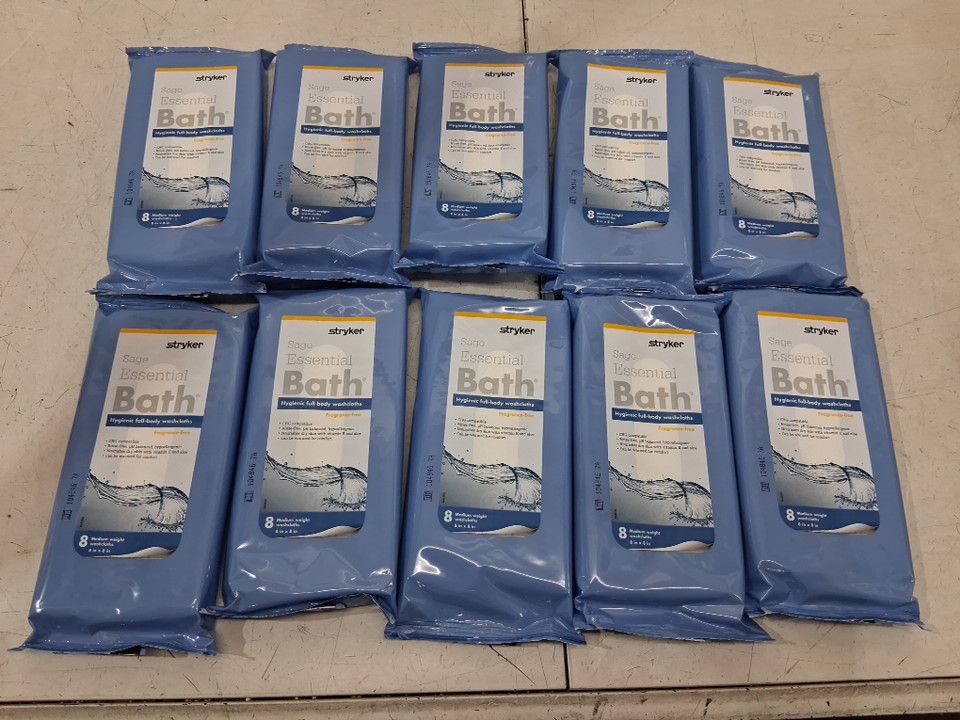 (10) 8pk stryker Sage Essential Bath Cleansing Washcloths - 8" x 8" each - 80 cloths total - white