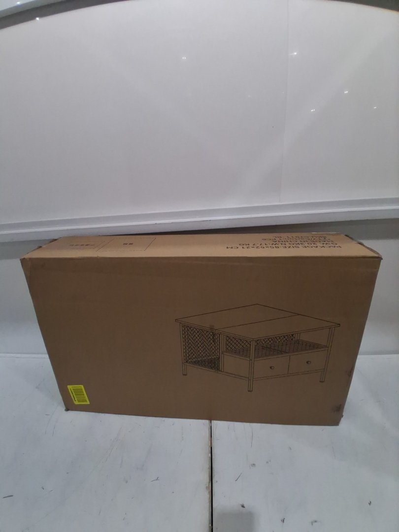 FABATO Farmhouse Square Flip Top Coffee Table with Wire Mesh Barn Door and Storage - 20" - Black - (Model: Ct011-BL)
