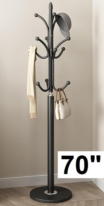 Modern Freestanding Coat Tree with Hooks - 70" - black