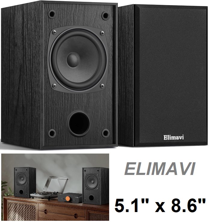 elimavi passive bokoshelf speakers - 5.1"x8.6" - black (model: bt-10)