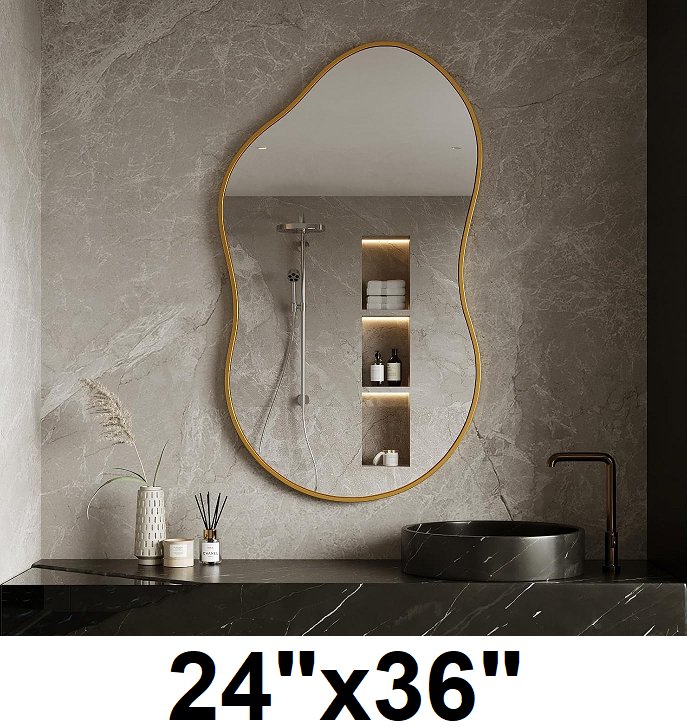 Irregular wavy Unique Shaped Wall Mirror - 24"x36" - gold