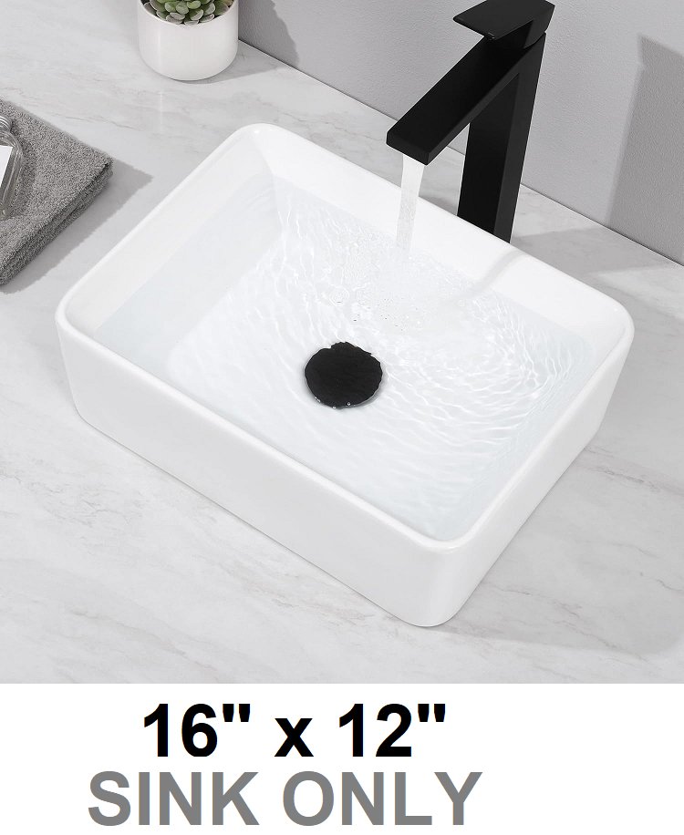 KES Bathroom Rectangle Vessel Sink - 16" x 12" - white